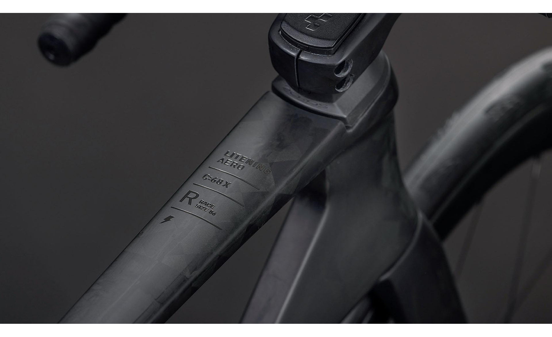 Cadre : Litening C:68X® Aero Monocoque, technologie Advanced Twin Mold, tubes optimisés Aero, passage interne intégral, Flat Mount.